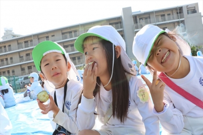 運動会でなくても鉄板で盛り上がる競技ですね。今日も園庭いっぱいに歓声が響きました。