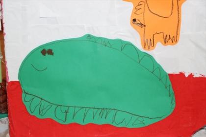 今年の作品展も、とってもにぎやかであたたかい時間になりました。子どもたちは、おうちの方に見てもらえるのがうれしくて、朝からそわそわしている姿がとてもかわいかったです。共同制作では、みんなで知恵や力を寄せ合って、ひとつの作品をつくり上げました。じつは夏ごろから、模造紙に絵の具をぬりぬりして遊んでいて、その日常のあそびがそのまま作品展につながっていく様子をそばで見て、子どもってすごいなあとしみじみ感じていました。