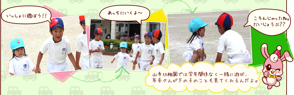 山手幼稚園では、早く幼稚園に登園するお友だち(先発バス組・お歩き組)と、遅く幼稚園に登園するお友だち